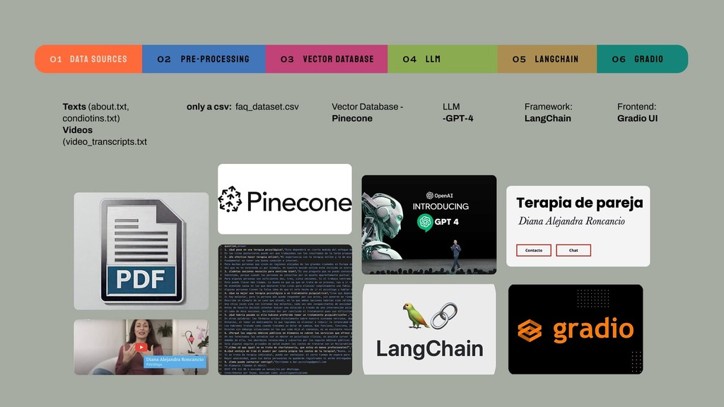 This chatbot uses a Retrieval-Augmented Generation (RAG) approach to deliver accurate answers based on real content from Alejandra’s website and YouTube channel. It connects structured text files and video transcripts with the power of GPT-4, using tools like Pinecone, LangChain, and Gradio to process, retrieve, and display responses smoothly on the frontend.