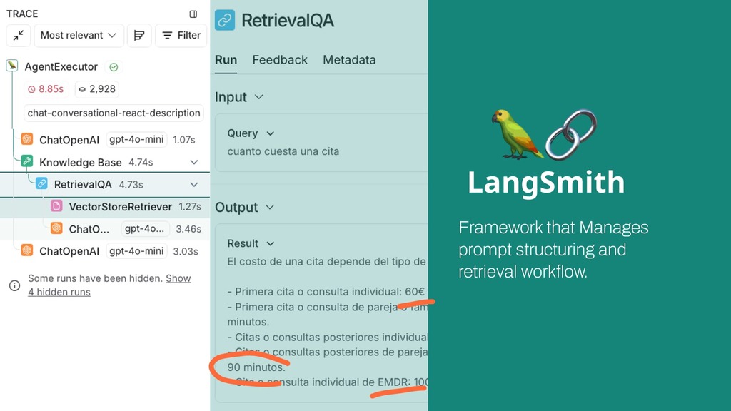Finally, I used LangSmith to trace each query, helping me validate if the answers were truly coming from my dataset or generated by GPT-4 alone.
