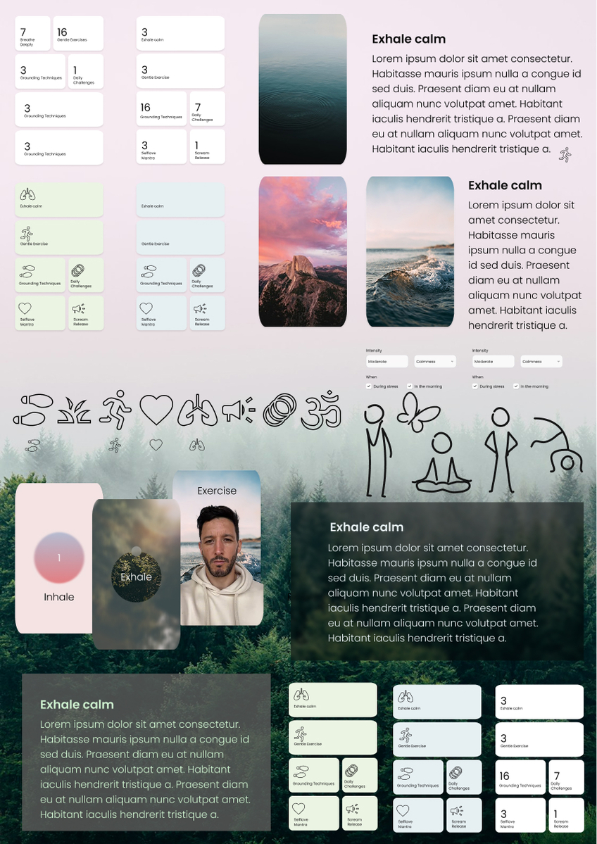 Through quick cycles of interviewing and mapping emotional states, I reframed the problem. The solution had to be minimal, fast and emotionally safe. The app became a collection of five minute features that deliver relief without demanding mental effort.