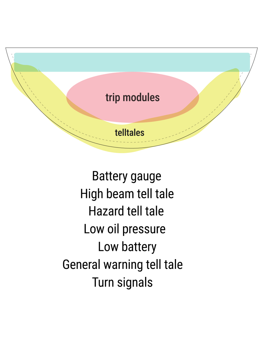 After several collaborative sessions with the client and gaining a deeper understanding of their vision, we arrived at an innovative solution for the display concept. The first step was to designate a fixed area for the telltales, adhering to motorcycle regulations that dictate specific requirements for color and placement—these elements couldn't be left to chance.