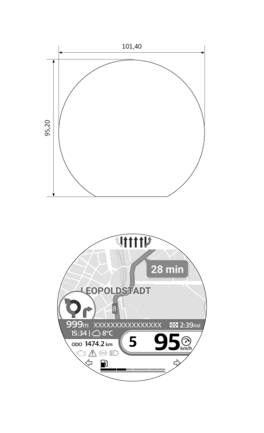 The client held a clear vision: the left screen was to remain predominantly for navigation, keeping the rider's journey at the forefront. Given the modest size of the displays, this constraint posed a particular challenge, effectively shrinking the usable space.
