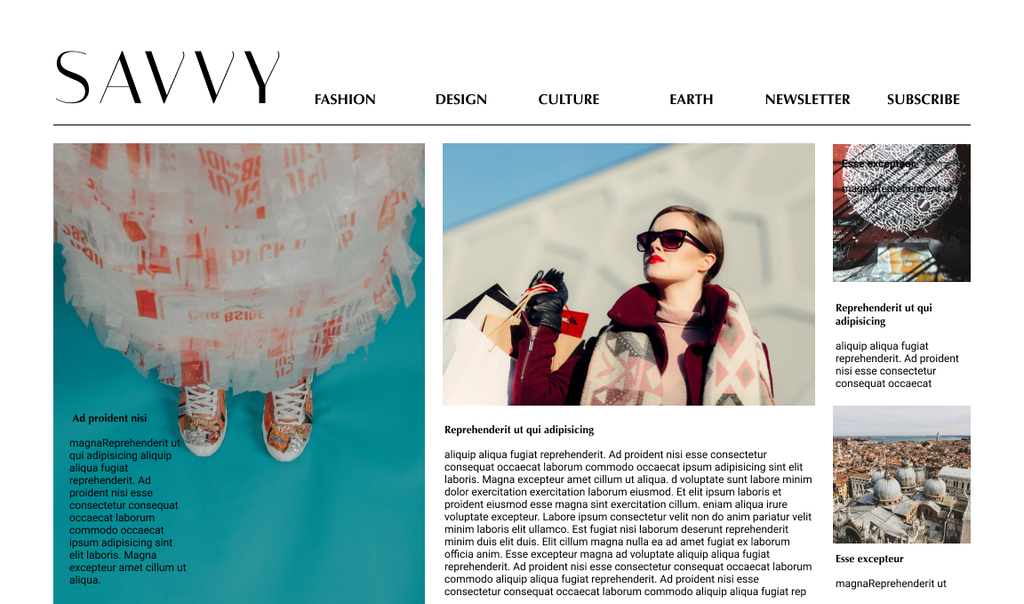 We embarked on creating a high-fidelity prototype, viewable on Figma, that encapsulates Savvy's key attributes: eco-friendly, sustainable, high fashion, and elegance. The design process included a visual analysis of leading competitors like Vogue, Elle, and Aware. We aimed to synthesise elements from these platforms, ranging from nature imagery and recycled materials to interviews with designers who adhere to sustainable practices. This approach ensured the articles would be visually appealing and varied enough to maintain online reader engagement.